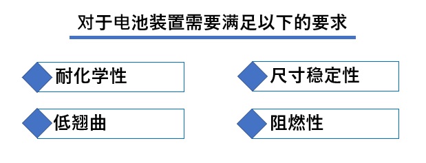 电池装置是一个重要的部件,它不仅确保电池组的安全,还确保电池组的整体功能。由于电池组由许多部件组成,因此必须根据每个部件的功能要求选择合适的材料。